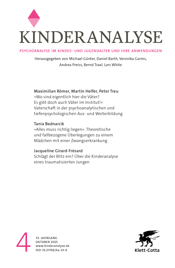 Die Kinderanalyse ist ein Forum für die Anwendung der Psychoanalyse in der Psychotherapie, Psychiatrie und Psychologie des Kinder- und Jugendalters. Die KINDERANALYSE erscheint viermal im Jahr und enthält klinische, theoretische und empirische Originalarbeiten deutschsprachiger und internationaler Autoren sowie kurze Fallstudien, Buchbesprechungen und kommentierte historische Arbeiten. Regelmäßig werden Hefte zu einem Schwerpunktthema sowie Hefte mit kinderanalytischen Arbeiten aus anderen Sprach- und Kulturkreisen gestaltet.